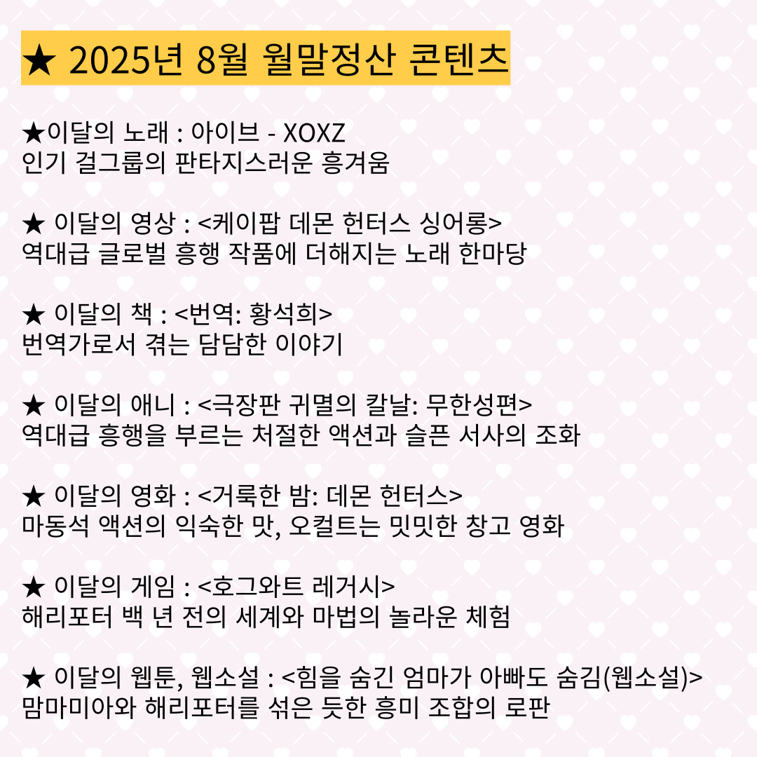 | [콘텐츠 스크랩북] 2025년 8월 4주차 (5) | 2025.08.25 |