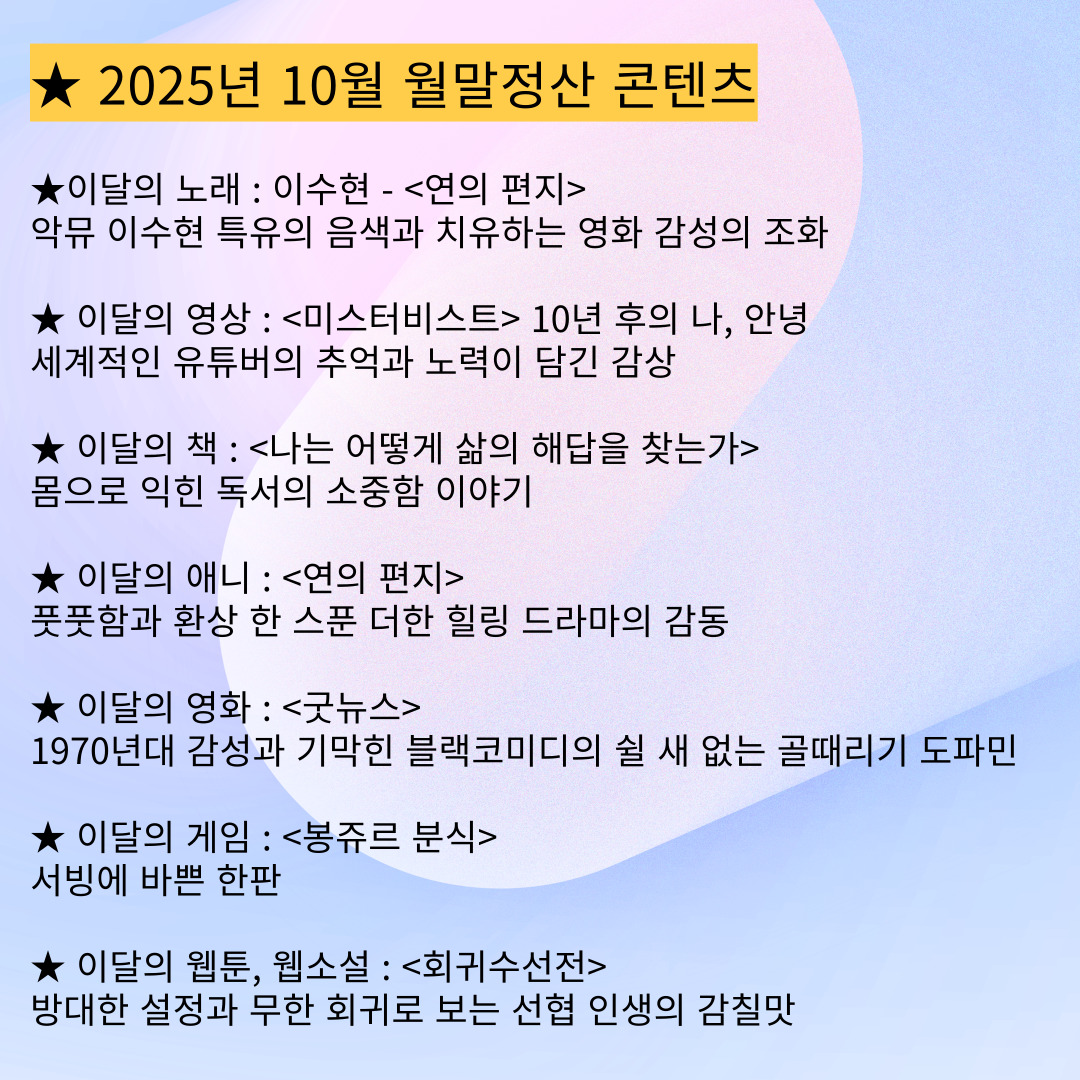 | [콘텐츠 스크랩북] 2025년 10월 4주차 (0) | 2025.10.27 |