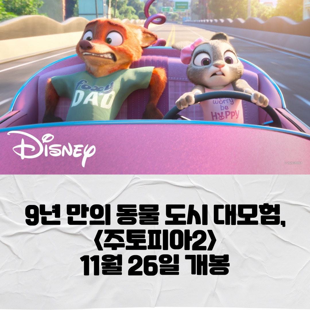 △ 포인트1. 본 작품은 지난 2016년 개봉작이자 월트디즈니 애니메이션 <주토피아> 이후 9년 만의 속편으로, 국내 및 북미에서 11월 26일 개봉된다.