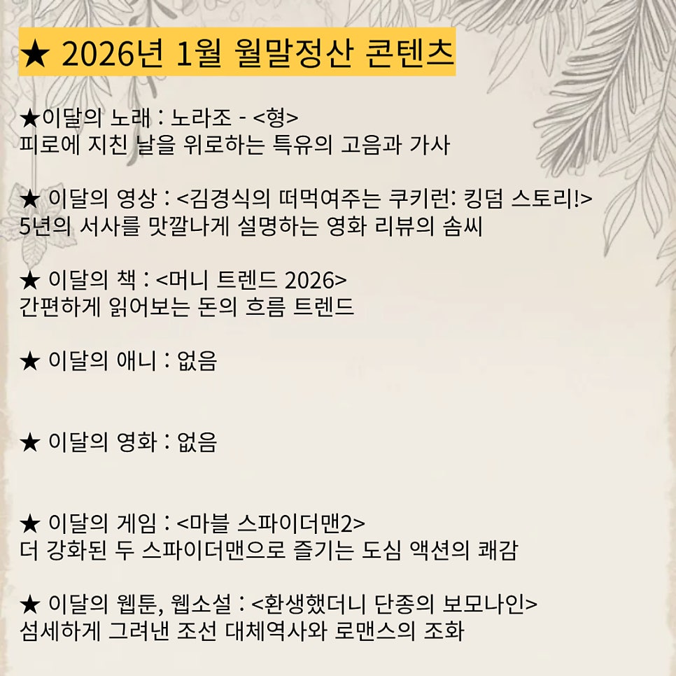 ◆ 2026년 1월 월말정산 콘텐츠